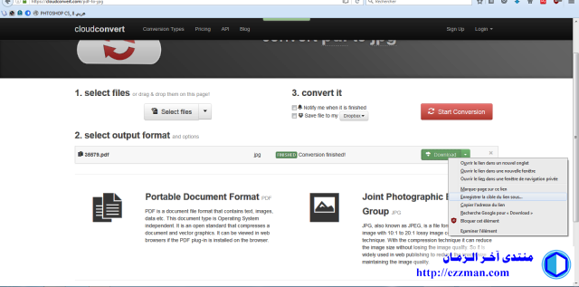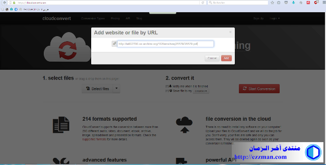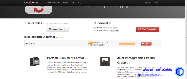 أقدم لكم موقع cloudconvert وهو موقع يساعد على تحويل أغلب صيغ الملفات الى صور و الذي قد نحتاجه في العمل الارشفي المرجعي الذي نحن بصدد العمل عليه في المنتدى
