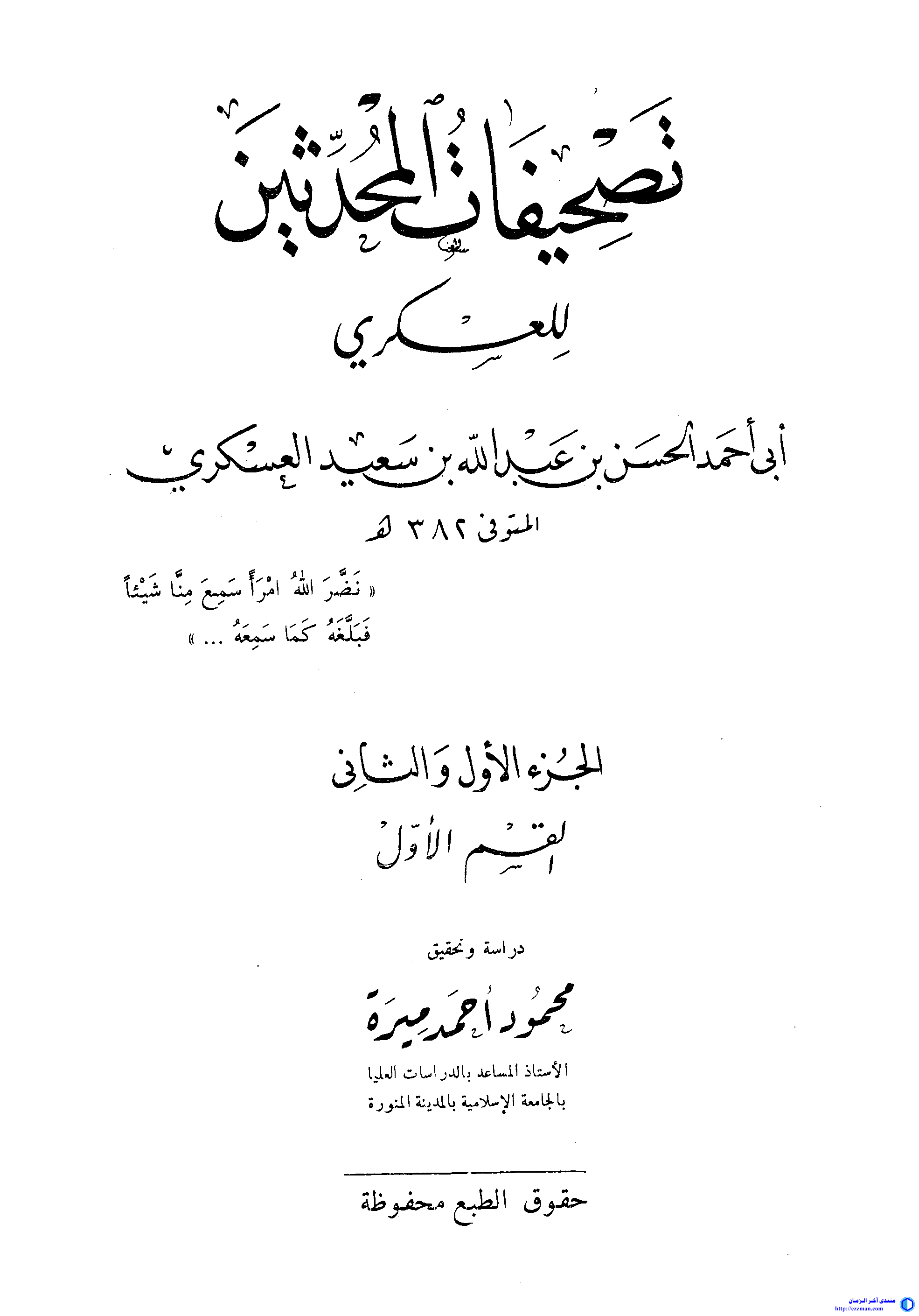 - عنوان الكتاب: تصحيفات المحدثين