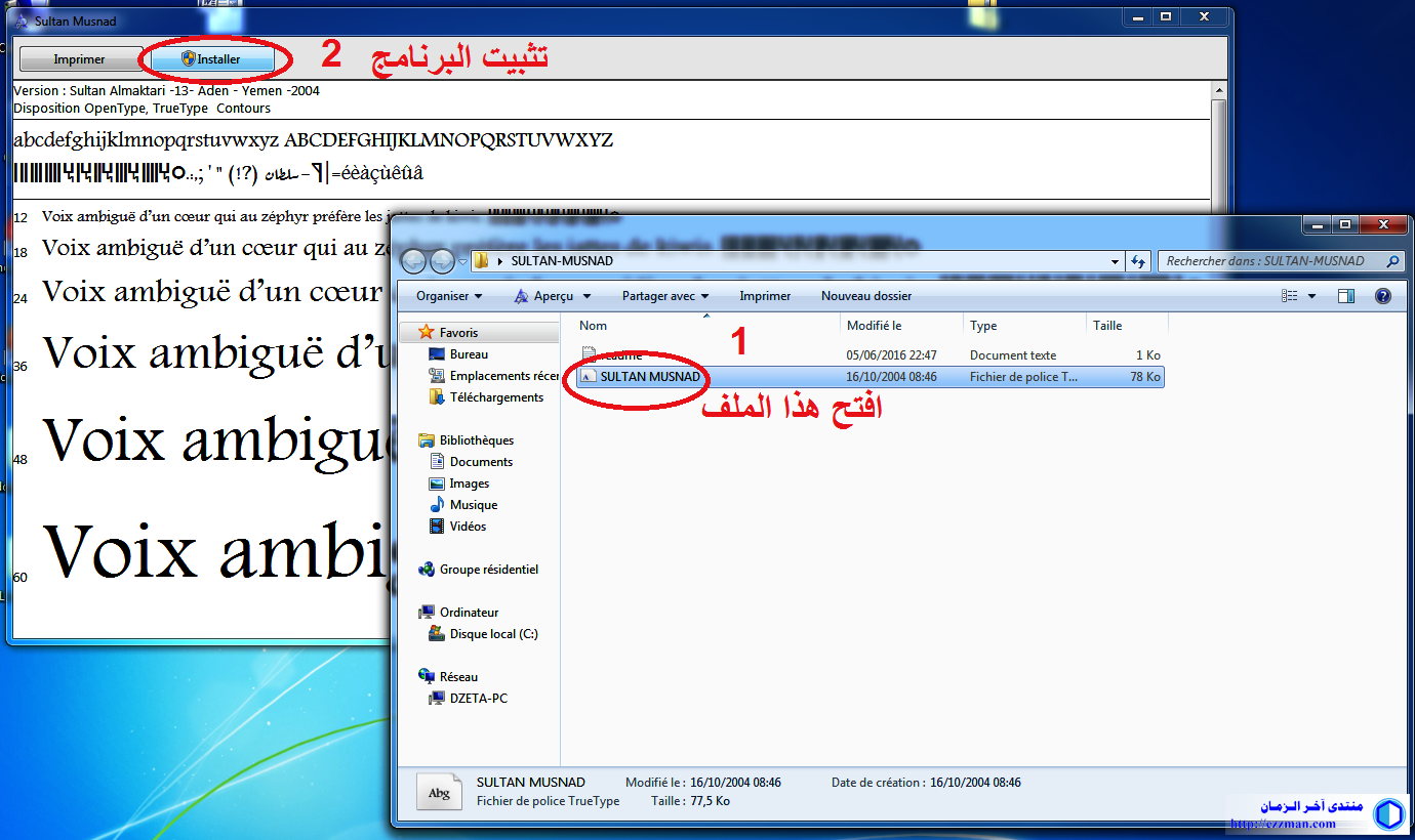 بعد اتمام عملية التثبيت {لا يستغرق ثوان..} لابد ان يظهر لك الخط في لوحة التحكم في الورد ..