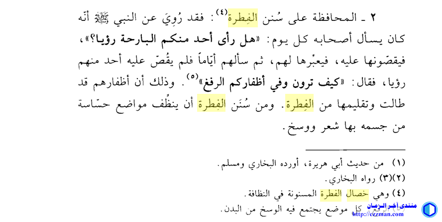 قول المعبّر : " لكن موانع الرؤيا الصالحة هي خصال الفطرة ، من لم يتعهّد خصال الفطرة مُنِع الرؤيا الصالحة ،