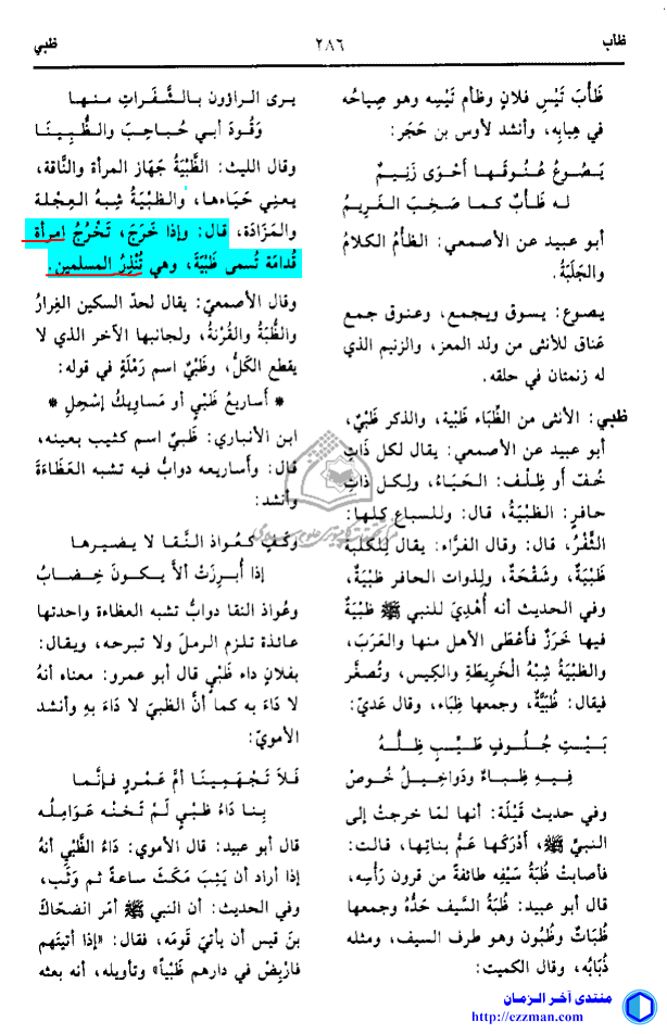 جاء في تهذيب اللغة لمؤلفه أبي منصور محمد بن أحمد الأزهري ومشرفه محمد عوض مرعب في مجلده الرابع عشر وطبعته الأولى الصادرة عن دار إحياء التراث العربي ببيروت عام 2001 (الصفحة 286) ما يلي :