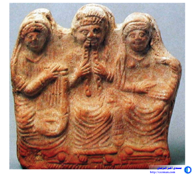 هناك تشابه كبير في طريقة لبس الشخصيات في الصورتين, فكلاهما يتكون أساسا من قطعتين عباءة طويلة تستر كامل الجسم حتى الكعبين, وخمار بطول الجسم كذلك, و يبدو أن طريقة اللبس هذه هي التي كانت شائعة قبل الاسلام وقد وثق ذلك العديد من علماء الاثار في كتبهم هذه احدى صورنساء من جنوب الجزيرة العربية لهم نفس اللبس تقريبا [لباس طويل مع تغطية للرأس]