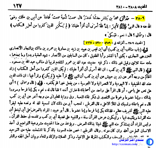 - فتح الباري 7/الرقم 3809 (في قائمة المصادر والمراجع: فتح الباري، بشرح صحيح الإمام البخاري. تحقيق محمد فؤاد عبد الباقي ومحب الدين الخطيب. القاهرة. 1380هـ)