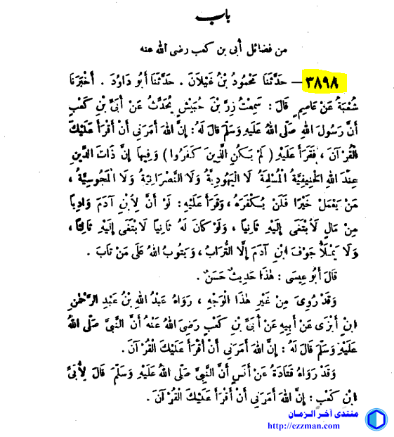 همّش أيضا: سنن الترميذي، 3793/5 ؛ 3898، (في قائمة المصادر والمراجع: سنن الترميذي، جامع الصحيح. تحقيق محمد شاكر ومحمد فؤاد عبد الباقي وإبراهيم عطوة عوض. القاهرة 1937-1967)