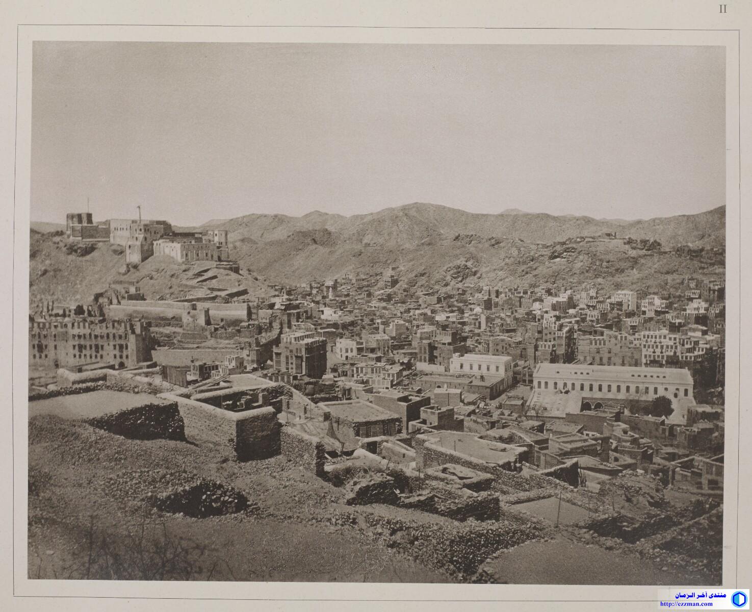 This image shows a view over the city of Mecca from an elevated position east of the Masjid al-Haram, or Grand Mosque. Parts of the city due south of the mosque are visible in the middle ground. (Compare, for example, X463/1.)