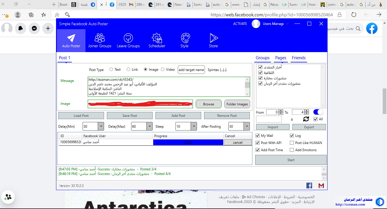 عل كل البرنامج سهل الاستعمال، لا ينشر روابط اشهارية، يمكن التحكم في النص المنشور والصور وروابط المواضيع..وينشر كذلك في عدة مجموعات في نفس الوقت..