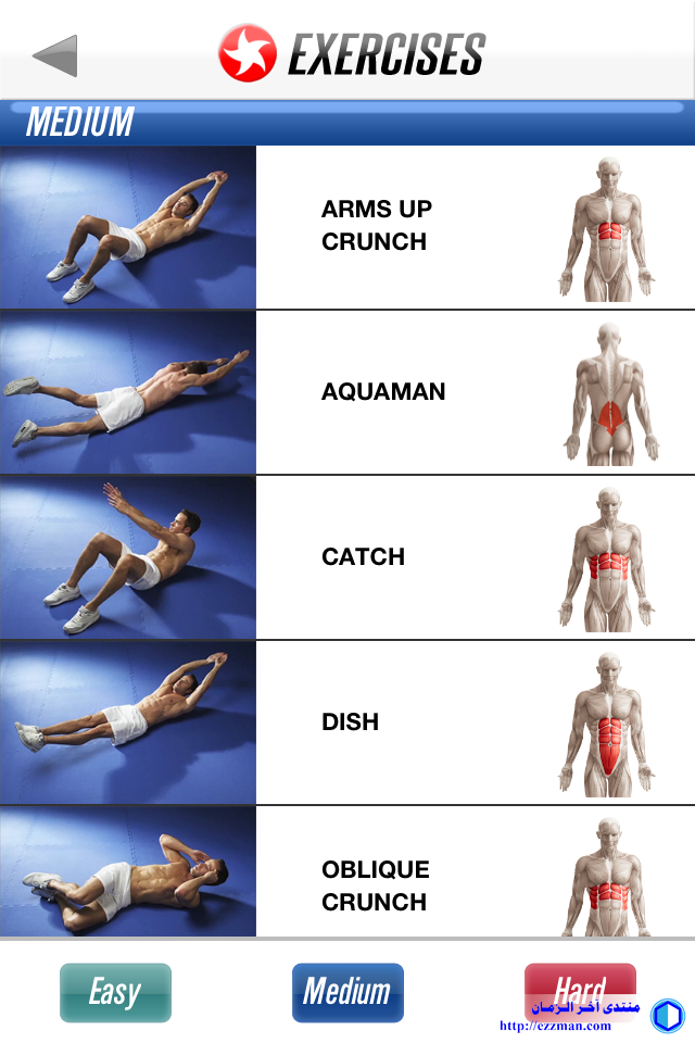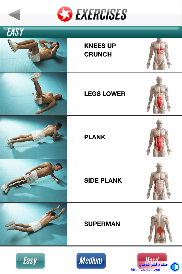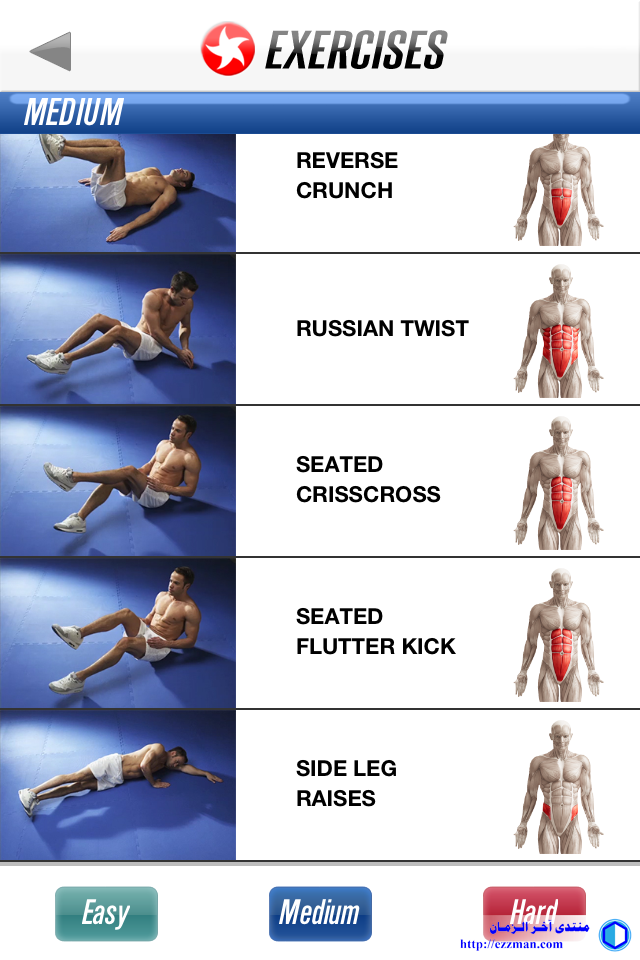 افتراضي تمارين عضلات البطن [عدة مستويات]