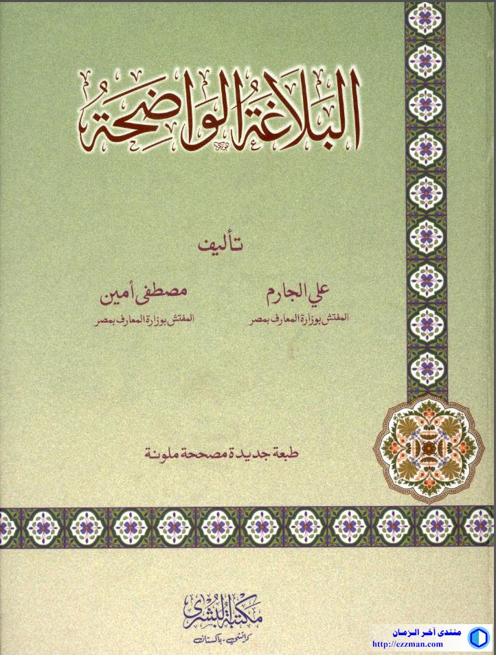 بسم الله الرحمن الرحيم http://ezzman.com/up/do.php?img=1428 البلاغة الواضحة علي الجارم _ مصطفى أمين http://ia600408.us.archive.org/21/it...haAlBushra.pdf |