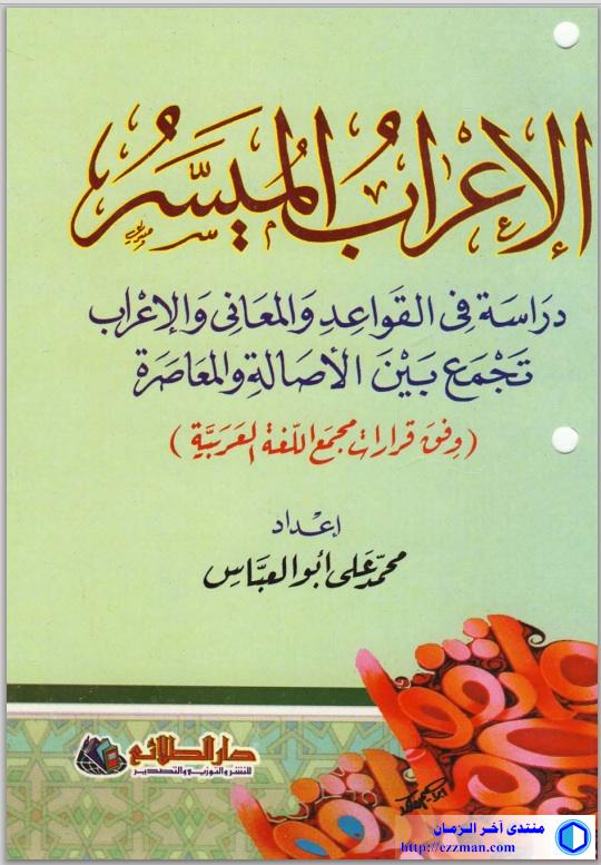 http://ezzman.com/up/do.php?img=1440 [ . اسم الكتاب: الاعراب الميسر و النحو اسم المؤلف: محمد علي ابو العباس حالة الفهرسة: غير مفهرس عدد المجلدات: 1 الحجم (بالميجا): 5 ------------ رابط التحميل : http://ia600401.us.archive.org/26/it...q0113/0113.pdf |