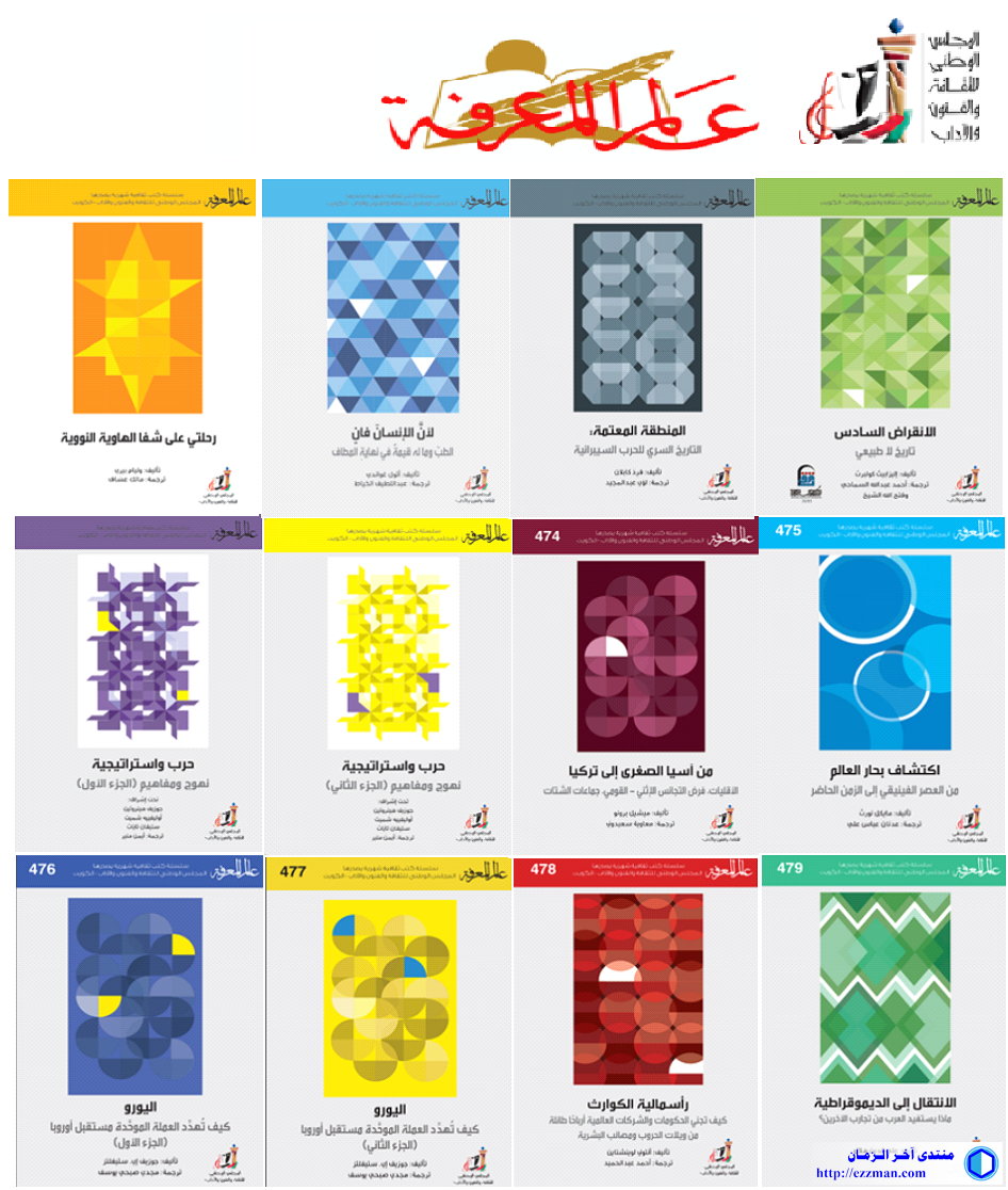 بسم الله الرحمن الرحيم عن مجلة عالم المعرفة عالم المعرفة سلسلة كتب ثقافية شهرية يصدرها المجلس الوطني للثقافة والفنون والآداب في دولة الكويت. صدر العدد الأول منها في يناير 1978 بإشراف أحمد مشاري العدواني والأستاذ الدكتور فؤاد زكريا. السلسلة موجهة للقارئ العربي غير المتخصص. وهي تجمع ما بين مؤلفات يكتبها متخصصون في شتى الموضوعات، وترجمات مختارات مما صدر في لغات أجنبية. وهذه السلسلة تحظى بإقبال القراء العرب ومحبي الاقتناء. و قد صدر عن الناشر منذ عدة سنوات قرص مدمج جمع الأعداد 267 الأولى من السلسلة في صيغة رقمية (ملفات PDF نصية) انتشر تداولها في مواقع كثيرة على الإنترنت. توقف صدور السلسلة مؤقتا بعد الغزو العراقي للكويت في أغسطس 1990 حيث كان عدد أغسطس هو العدد رقم 152 بعنوان "التلوث مشكلة العصر"، حتى صدر العدد رقم 153 في أكتوبر 1991 بعنوان "الكويت والتنمية الثقافية العربية". ![]() روابط تحميل سلسلة عالم المعرفة كاملة صفحات التحميل من أرشيف كالتالي : الأعداد من 1 الي 267 : اضغط هنا الاعداد من 268 الي 280 : اضغط هنا الأعداد من 281 الي 340 : اضغط هنا الاعداد من 341 الي 396 : اضغط هنا وهذا ملف واحد على الميديا فاير به 267 كتابا من السلسلة حجمه 80 ميجا فقط مضغوطا : اضغط هنا الروابط المباشرة المفردة لكل كتاب من السلسلة : 001 الحضارة 002 اتجاهات الشعر العربي المعاصر 003 التفكير العلمي 004 الولايات المتحدة و المشرق العربي 005 العلم و مشكلات الإنسان المعاصر 006 الشباب العربي المعاصر 007 الأحلاف و التكتلات في السياسة العالمية 008 تراث الإسلام (الجزء الأول) 009 أضواء على الدراسات اللغوية المعاصرة 010 جحا العربي 011 تراث الإسلام (الجزء الأول) 012 تراث الإسلام (الجزء الثاني) 013 الملاحة و علوم البحار عند العرب 014 جمالية الفن العربي 015 الإنسان الحائر بين العلم و الخرافة 016 النفط و المشكلات المعاصرة للتنمية العربية 017 الكون و الثقوب السوداء 018 الكوميديا و التراجيديا 019 المخرج 020 التفكير المستقيم و التفكير الأعوج 021 مشكلة إنتاج الغذاء في الوطن العربي 022 البيئة و مشكلاتها 023 الرِّق 024 الإبداع في الفن و العلم 025 المسرح في الوطن العربي 026 مصر و فلسطين 027 العلاج النفسي الحديث قوة للإنسان 028 أفريقيا في عصر التحول الاجتماعي 029 العرب و التحدي 030 العدالة و الحرية في فجر النهضة العربية الحديثة 031 الموشحات الأندلسية 032 تكنولوجيا السلوك الإنساني 033 الإنسان و الثروات المعدنية 034 قضايا أفريقية 035 تحولات الفكر و السياسة في الشرق العربي 036 الحب في التراث العربي 037 المساجد 038 تكنولوجيا الطاقة البديلة 039 ارتقاء الإنسان 040 الرواية الروسية في القرن التاسع عشر 041 الشعر في السودان 042 دور المشروعات العامة في التنمية الاقتصادية 043 الإسلام في الصين 044 اتجاهات نظرية في علم الاجتماع 045 الشطار و العياريين 046 دعوة إلى الموسيقا 047 فكرة القانون 048 التنبؤ العلمي و مستقبل الإنسان 049 صراع القوى العظمى حول القرن الأفريقي 050 التكنولوجيا الحديثة 051 السينما في الوطن العربي 052 النفط و العلاقات الدولية 053 البدائية 054 الحشرات الناقلة للأمراض 055 العلم بعد مائتي عام 056 الإدمان مظاهره و علاجه 057 البيروقراطية النفطية و معضلة التنمية 058 الوجودية 059 العرب أمام تحديات التكنولوجيا 060 الأيديولوجيا الصهيونية 061 الإيديولوجيا الصهيونية (القسم الثاني) 062 حكمة الغرب (الجزء الأول) 063 الإسلام و الاقتصاد 064 صناعة الجوع 065 مدخل إلى تاريخ الموسيقا المغربية 066 الإسلام و الشعر 067 بنو الإنسان 068 الثقافة الألبانية في الأبجدية العربية 069 ظاهرة العلم الحديث 070 نظريات التعلم 071 الاستيطان الأجنبي في الوطن العربي 072 حكمة الغرب (الجزء الثاني) 073 التخطيط للتقدم الاقتصادي و الاجتماعي 074 مشاريع الاستيطان اليهودي منذ قيام الثورة الفرنسية حتى نهاية الحرب العالمية الأولى 075 التصوير و الحياة 076 الموت في الفكر الغربي 077 الشعر الإغريقي 078 قضايا التبعية الإعلامية و الثقافية 079 مفاهيم قرآنية 080 الزواج عند العرب 081 الأدب اليوغوسلافي 