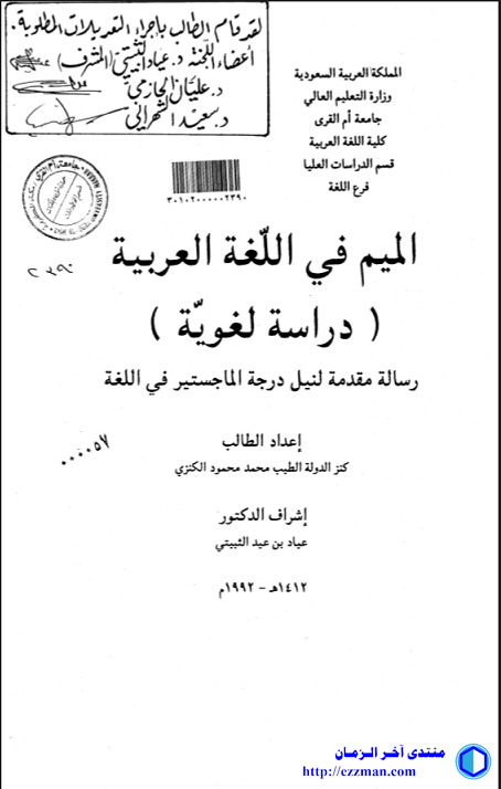 السلام عليكم ورحمة الله وبركاته http://ezzman.com/up/do.php?img=1595 الميم في اللغة العربية ( دراسة لغوية ) إعداد : كنز الدولة الطيب محمد محمود الكنزي اشراف : الدكتور عياد بن عيد الثبيتي تصنيف : رسالة ماجستير للتحميل اضغط الرابط أدناه الميم في اللغة العربية ( دراسة لغوية ) - الرساله العلمية |