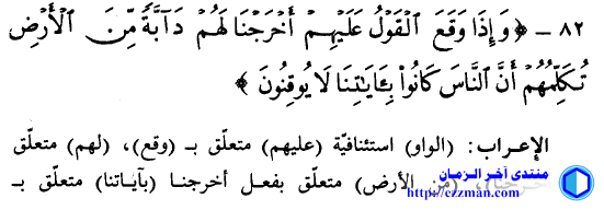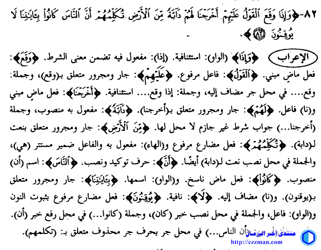 هذا إعراب بعض أساتذة اللغة العربية للآية 82 من سورة النمل - كلمة دابة - و هو مختلف تماما عما قدمتموه