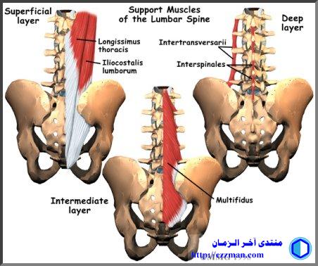 وخيرا جزاكم الله وبارك فيكم بكل تأكيد تشمل التدريبات العضلات السطحية والغائرة .. ولكن هناك تمارين مركزة للعضلات الغائرة تجبرها على العمل .. فهذه العضلات الغائرة نادرا ما تعمل .. وهذا من أسباب ضعفها وبالتالي ترهلها ومن ثمهبوط فقرات الظهر عن وضعها الثابت فتتقارب من بعضها وتضغط على الغضروف .. واعلضلات السطحية ليست وظيفتها رفع الفقرات إنما وظيفتها حركية فقط لذلك يجب القيام بتمارين خاصة بالعضلات الغائرة تقوم بمطها وإطالتها وبالتالي تزداد قوة فترفع الفقرات وتفرقها عن بعضها البعض مما يساعد الغضروف المرن أن يرجع إلى مستقره كما كان ومما يرفع الضغط عن العصب فيختفي الألم