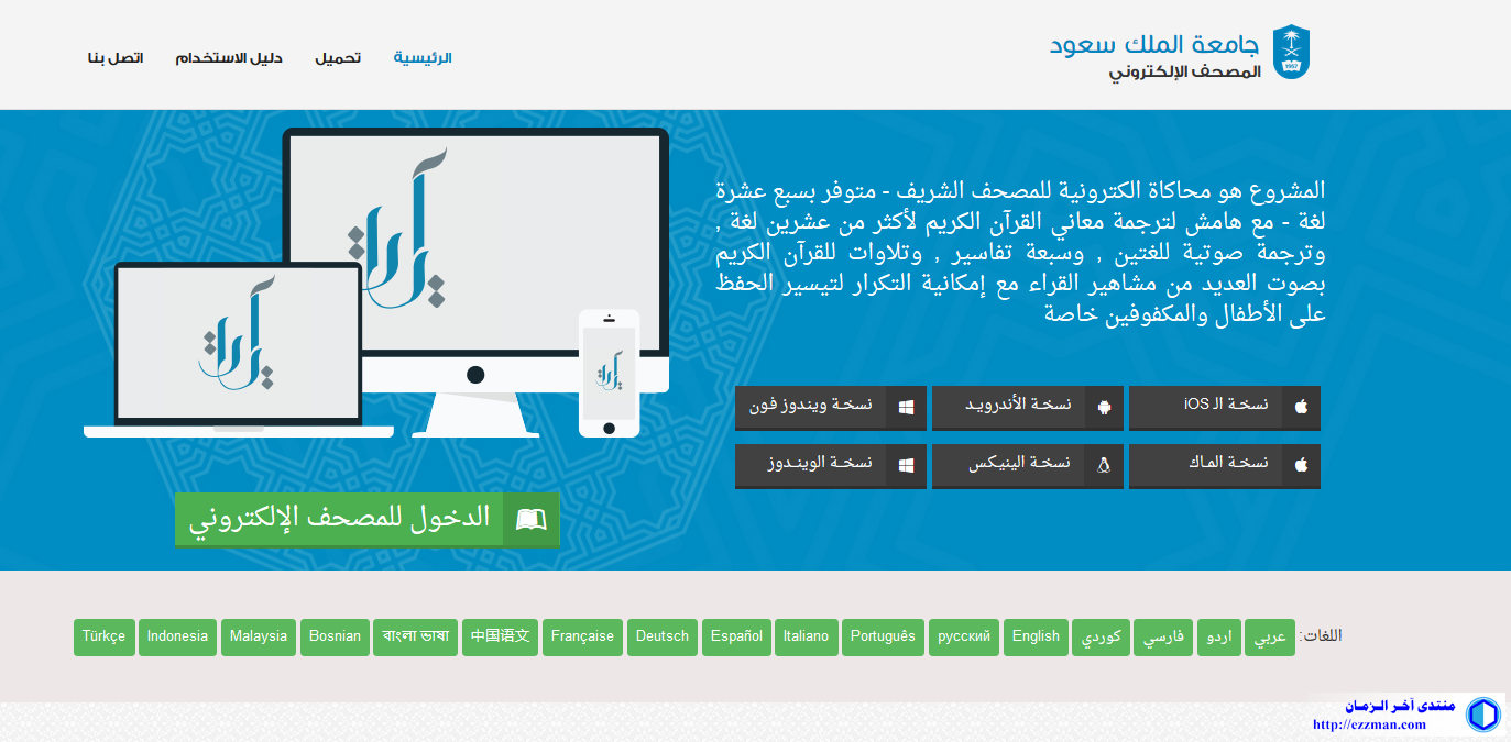ايات من موقع جامعة الملك سعود القرآن الكريم - مشروع المصحف الإلكتروني بجامعة الملك سعود الموقع يمنح نسخة للتحميل للهواتف و الحواسيب