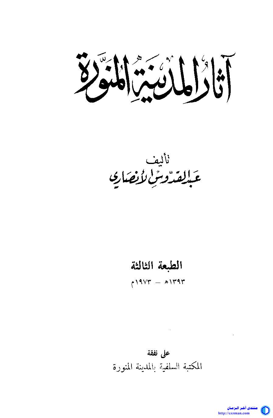 كتاب آثار المدينة المنورة تاليف عبد القدوس الانصاري رابط التحميل https://ia801409.us.archive.org/15/i...7634/17634.pdf