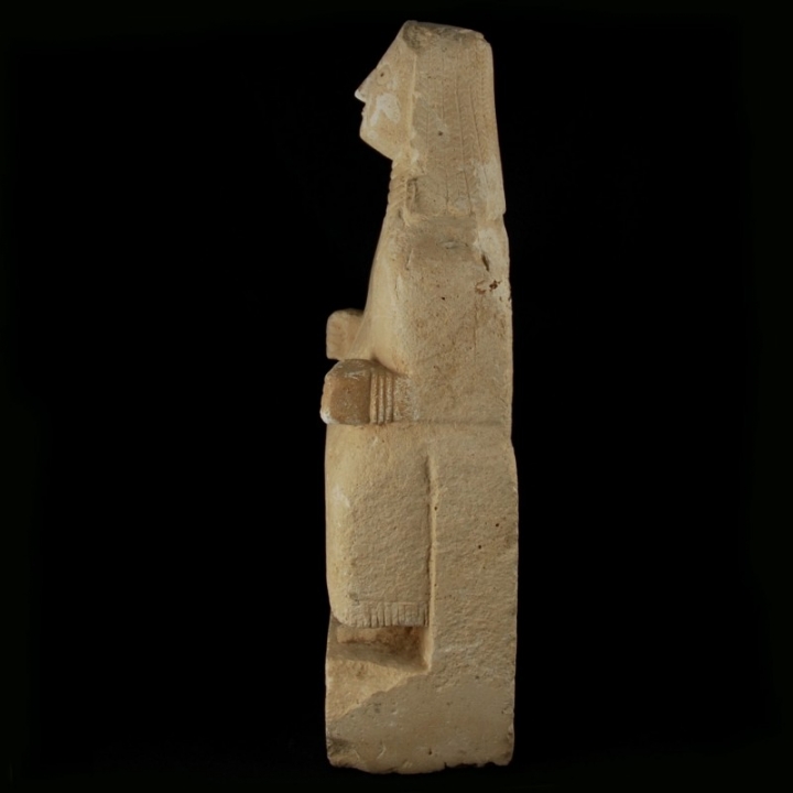 http://ezzman.com/up/do.php?img=3887 نلاحظ في هذا التمثال وجود أهداب في الطرف السفلي من الثوب، وهو مشابه للأهداب في طرف ثوب المرأة المسبية حاملة الإناء http://ezzman.com/up/do.php?img=3888 ومن هذا الجانب نلاحظ في هذا التمثال وجود ثلاثة أساور في المعصمين، وثلاثة أطواق حول العنق، وهو مشابه للثلاثة أساور في معصمي المرأة المسبية حاملة الإناء http://ezzman.com/up/do.php?img=3889 Sabean Limestone Stele of a Seated Woman Culture: Sabaean Period: 1st century B.C. Material: Limestone Dimensions: 47 cm high Price: Sold Ref: 6156 Provenance: American private collection, acquired in the 1970s. As of 1991 at Shadad Antiques in London. Christie’s auction on 12 June 2002, lot 349. Thence London art market. Condition: Except for small chips intact and of strong expression. Description: Monumental limestone stele of a seated woman in a long tunica with a ribbed hem. She wears opulent neck jewellery with nine small circular pendants and one large circular pendant, hanging on a crescent amulet. The face is characterized by a big nose and finely pierced, almond-shaped eyes. The long hair cascades in finely carved braids on the shoulders. The bent arms wear bracelets and are stretched forward as fists. Bare feet are visible under the tunica. Remains of white engobe are preserved. |