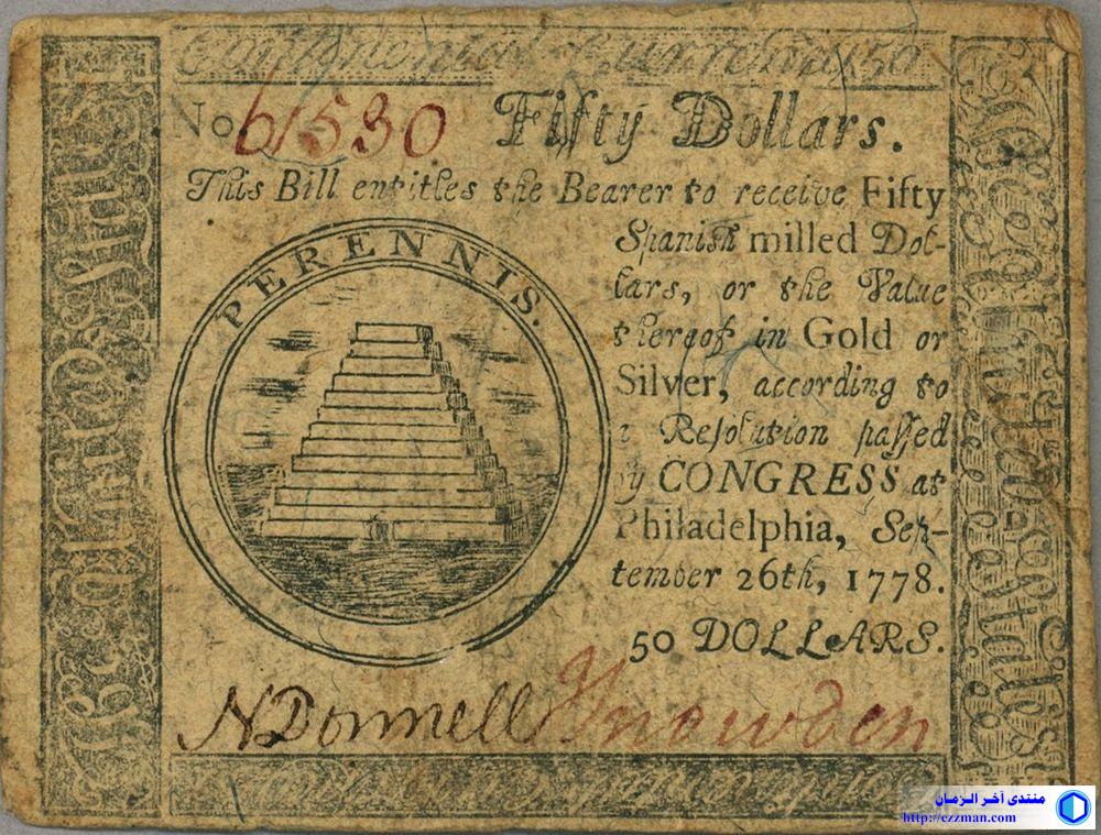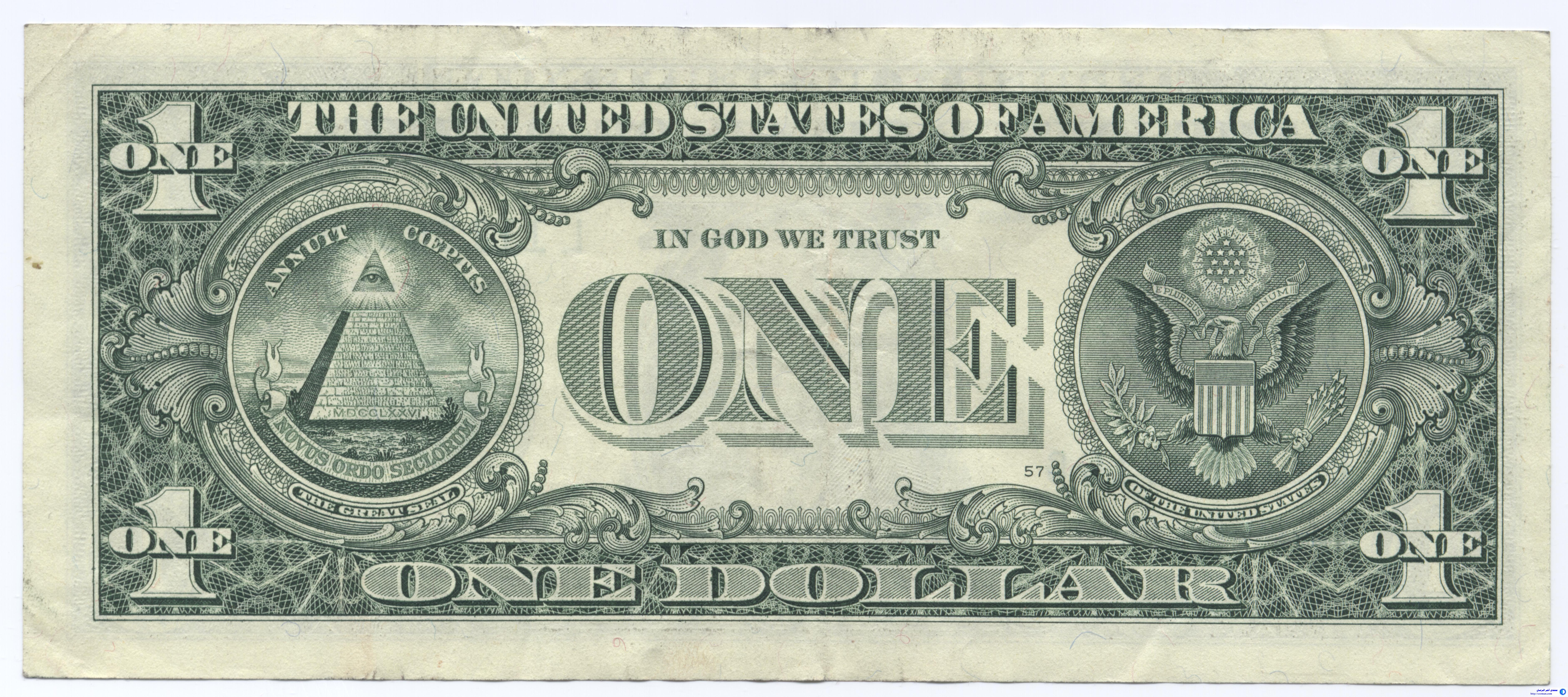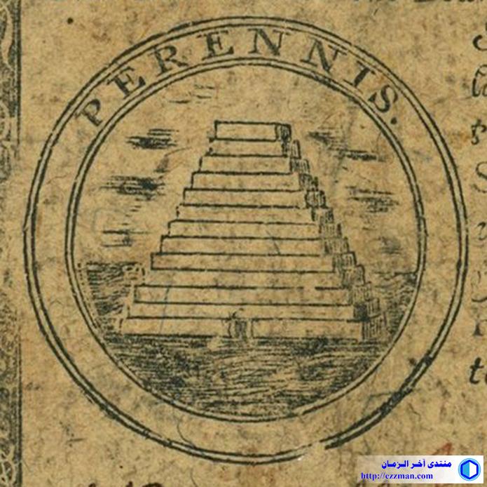 من الملاحظ هنا في في هذه العملة التي صدرت عام 1779 أن الهرم الماسوني ناقص، فيتكون من 13 مصطبة، وهو نفس عدد المصاطب على عملة الدولار الحالي الذي امتدت عملية تصميمه على مدى ست سنوات ومن خلال ثلاث لجان. تم تقديم الاقتراح النهائي، الذي تم قبوله من قبل الكونغرس، في 13 يونيو 1782، من قبل تشارلز تومسون ، وهو تاجر بارز في فيلادلفيا وسكرتير المؤتمر القاري. ويعود إليه الفضل في وضع اللمسات الأخيرة على التصميم - لتوحيد أفكار اللجان الثلاث، ومستشاريها، والفنانين. ولكن الفارق بينهما أن الهرم بلا قمة مدببة كما في الدولار الحالي، وهذا بحاجة إلى بحث عن السبب في عدم إضافة القمة، أو لما تمت إضافة القمة المثلثة فوق الهرم؟ هذا مع وجود بوابة صغيرة أسفل الهرم، والتي اختفت من الهرم في الدولار الحالي. تعني "الأبدية" “Perennis,” meaning “everlasting“ الختم العظيم للولايات المتحدة في عملة 1 دولار. للمرة التالية كان الرجل المسؤول عن دمج تصميم "العين في القمة" في الدولار الأمريكي هو نائب الرئيس هنري والاس Henry A. Wallace عاش بين (1888 - 1965) رمز رأس الزاوية مأخوذ من [مزمور: 22:118] (الْحَجَرُ الَّذِي رَفَضَهُ الْبَنَّاؤُونَ قَدْ صَارَ رَأْسَ الزَّاوِيَةِ.). وقد اقتبس في الإنجيل في عدة مواضع، فيفسره الصليبيين كما يقول الخوري كامل يوسف كامل على النحو التالي: "لماذا شبه يسوع بالحجر الذي رذله البناؤون؟ يقال أنه عندما بني هيكل سليمان وجد البناؤون حجرا كبيرا مرميا، ظنوا أنه لا يصلح لشيء، فرفضوه واحتقروه ورموه خارج البناء. وعندما وصلوا الى الزاوية وهو المكان الذي يلتقي بهما الحائطان (الانسان والله) ليكتمل البناء لم يجدوا حجرا يصلح لربط الحائطين وتشكيل الزاوية الا الحجر الذي سبق لهم ورذلوه ورفضوه وحكموا عليه بالموت على الصليب موجهين له الاهانات وأحقر العبارات وأشد العذابات حتى الموت، دون أن يعلموا أنه هو الوحيد الذي يربط الله بالانسان والانسان بالله." فهل المراد بحجر الزاوية الأمانة التي رفضها الأنبياء، وهي (عين البصيرة التي ترى كل شيء) وحملها في آخر الزمان المسيح الحق (الدابة) أم مسيح الضلالة الأعور الدجال؟ فعين البصيرة مسؤول عنها كل من يحمل مسؤوليتها قال تعالى: (وَلَا تَقْفُ مَا لَيْسَ لَكَ بِهِ عِلْمٌ ۚ إِنَّ السَّمْعَ وَالْبَصَرَ وَالْفُؤَادَ كُلُّ أُولَٰئِكَ كَانَ عَنْهُ مَسْئُولًا) [الإسراء: 36] والأمانة التي رفضها الأنبياء ذكرت في قوله تعالى: (إِنَّا عَرَضْنَا الْأَمَانَةَ عَلَى السَّمَاوَاتِ وَالْأَرْضِ وَالْجِبَالِ فَأَبَيْنَ أَن يَحْمِلْنَهَا وَأَشْفَقْنَ مِنْهَا وَحَمَلَهَا الْإِنسَانُ ۖ إِنَّهُ كَانَ ظَلُومًا جَهُولًا) [الأحزاب: 72]
