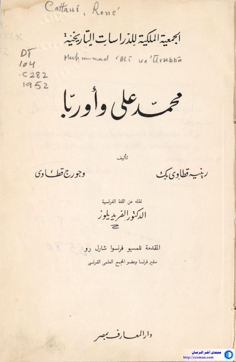 محمد علي وأوربا رينيه قطاوي بك - جورج قطاوي ترجمه من الفرنسية: ألفريد يلوز http://dlib.nyu.edu/files/books/auc_...yOlgmdRzbCP-Mk