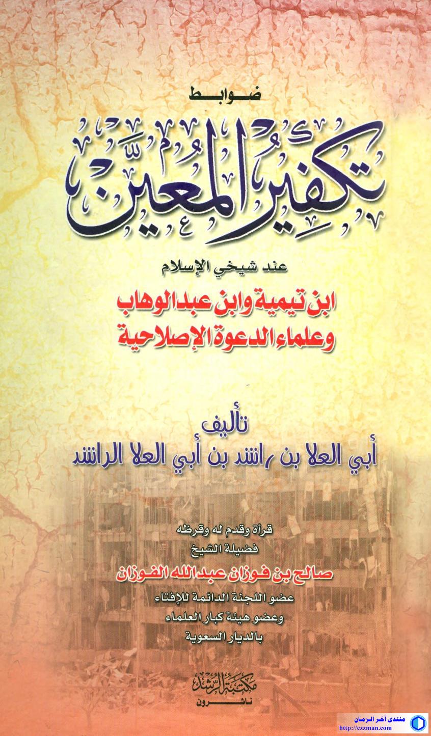 ضوابط تكفير المعين عند شيخي الإسلام ابن تيمية وابن عبد الوهاب وعلماء الدعوة الإصلاحية أبو العلا بن راشد بن أبي العلا الراشد https://ia600306.us.archive.org/5/it...4359/64359.pdf