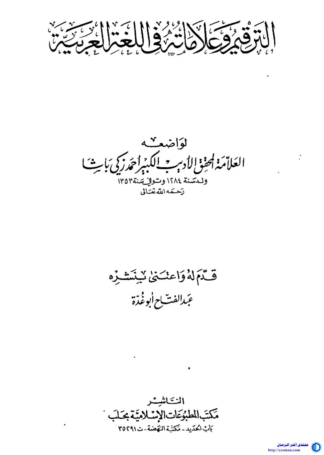 عنوان الكتاب:الترقيم و علاماته في اللغة العربية
