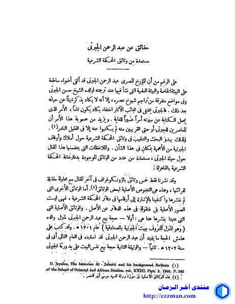 افتراضي حقائق عن عبد الرحمن الجبرتي مستمدة من وثائق المحكمة الشرعية