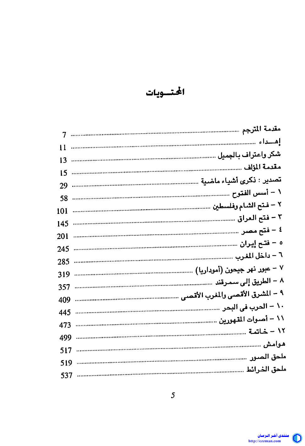 http://ezzman.com/up/do.php?img=6161 الفتوح الإسلامية كيف غير انتشار الإسلام العالم الذي نعيش فيه هيو كينيدي ترجمة : قاسم عبده قاسم الطبعة الأولى 2008م المشروع القومي للترجمة العدد 1287 المركز القومي للترجمة - القاهرة 570 صفحة http://ezzman.com/up/do.php?img=6162 https://drive.google.com/file/d/0B2g...pWjwonm6EnV9ik لم يعرف العالم قديمًا وحديثًا ، ظاهرة تشبه ظاهرة الإنتشار السريع والدائم للإسلام على هذه الرقعة الشاسعة من العالم . وكان طبيعيًا أن تثور الأسئلة المندهشة حول هذه الظاهرة منذ البداية فى القرن الهجرى الأول (السابع الميلادى) وتستمر حتى الآن . وفى هذا الكتاب الفذ يحاول هيو كينيدى المؤرخ المتخصص العارف أن يقدم الإجابة من خلال عرضه لأحداث الفتوح الإسلامية فى الشرق والغرب وتجلياتها ونتائجها . وفى رأيه أن المسلمين ساروا على منهج عش ودع الآخرين يعيشون" ؛ ولهذا انتشر الإسلام وبقى. |