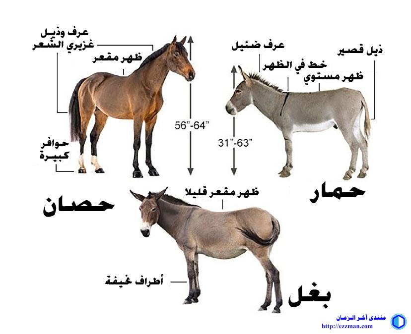 افتراضي الفرق بين شكل الحصان والبغل والحمار