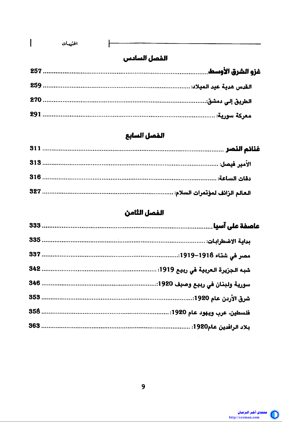 نهاية الدولة العثمانية وتشكيل الشرق الأوسط ديفيد فرومكين تقديم: منذر الحايك ترجمة: وسيم حسن عبده الطبعة الأولى 2015م دار صفحات - دمشق 424 صفحة https://down.ketabpedia.com/files/bnr/bnr1167-1.pdf قام تشرشل الذي كان بوش يحتفظ له بتمثال في مكتبه البيضاوي, بالدور الأكبر لتأسيس معظم دول الشرق الأوسط , وقد تأتي لواحد من أنجب تلامذته في المدرسة الاستعمارية, أن يسعى لتقليده في إعادة تكوين شرق أوسط جديد, وذلك من خلال ما قام به بوش من مغامرات لم يصلحها ضعف وتردد وانسحابات أوباما, ربما لترافقها بمرحلة, سيطر عليها العنف بمقاييس غير مسبوقة ولم تنته حتى الآن, عرفت بالربيع العربي. كل ذلك أضعف قدرة أنظمة دول الشرق الأوسط على البقاء, وفضح حججها في تسويغ شرعية وجودها. وبرؤية شمولية لتكوين الشرق الأوسط جمع هذا الكتاب لأول مرة إجابات كاملة عن أسئلة كانت ولا تزال رمز الحيرة والتعمية والتضليل, منها: كيف شكلت بريطانيا الكيانات الجغرافية والسياسية للشرق الأوسط؟ ولماذا كانت تلك الكيانات وتلك الشخصيات تحديدا؟ وماذا كانت تريد أن تحقق وهي تتخذ قرارات مصيرية لملايين الناس؟ ومن هم أولئك الرجال الذين صاغوا أخطر القرارات؟ ويبقى الجزء الأهم من الكتاب وضعه لحدود الواقع والخيال لما كنا نعرفه عن تلك المرحلة: الجمعيات العربية, ابن سعود, الشريف حسين, الملك فيصل والأمير عبد الله, وعد بلفور وغيرهم. حيث سيدرك القارئ معنى المصادفة في التاريخ, وسيعرف معنى التآمر لتمرير السياسات حتى ضمن الجهاز الواحد للدولة, وسيصعب عليه أن يصدق كثيرا مما ورد, ولذلك قد يخلق الكتاب أزمة ثقافية, فهو يقلب كل ما تعلمناه أو جله, ولكن الأخطر هو الأزمة الروحية التي سيخلفها بعد قراءته, مما يفسر لماذا عده كثيرون عملا غير مسبوق. المصدر: منتـدى آخـر الزمـان